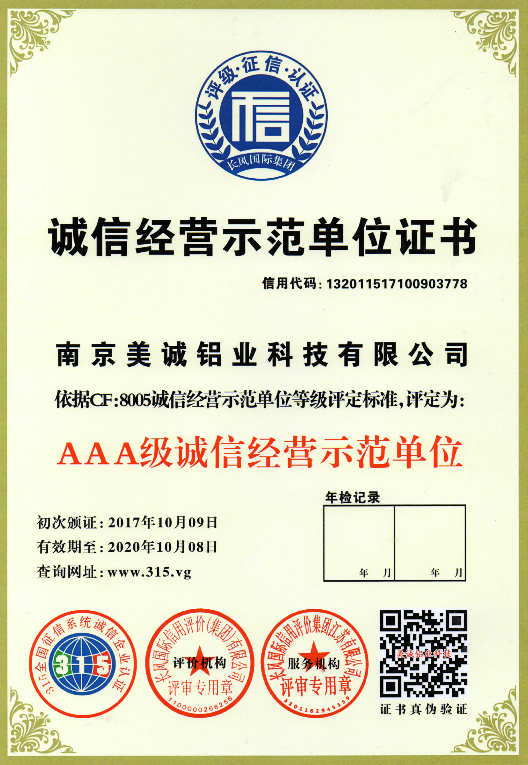 質(zhì)量服務(wù)信譽(yù)證書