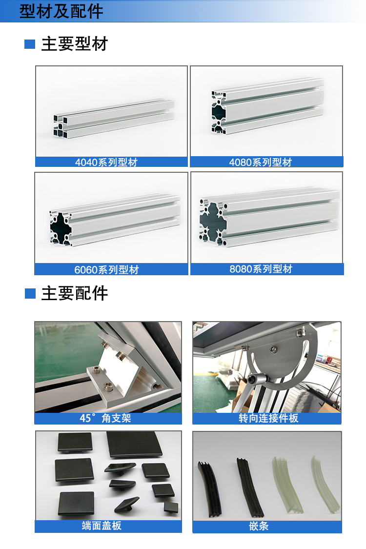 廣泛應用于自動化行業(yè)、汽車制造行業(yè)、電子行業(yè)及潔凈工程和高??蒲械阮I域,配套專用螺栓螺母、強力角件以及相關專用連接件進行組裝成品。