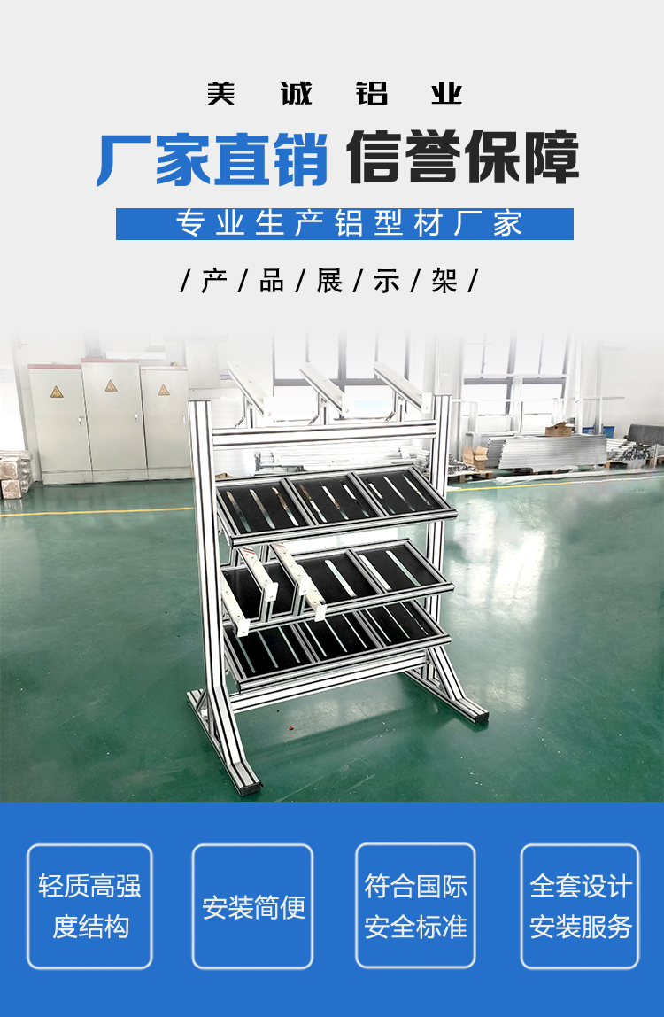 鋁型材產(chǎn)品料架也叫產(chǎn)品展示架、產(chǎn)品貨架,是用工業(yè)鋁型材和相關鋁型材配件組裝而成的