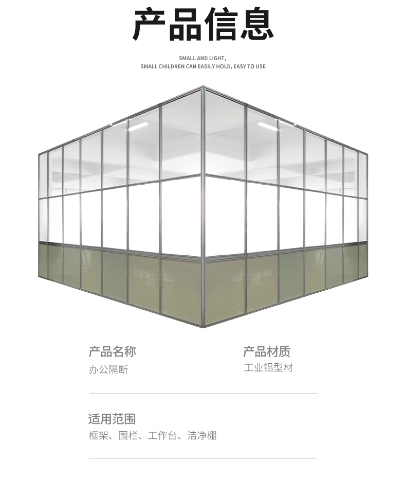 廣泛應用于自動化行業(yè)、汽車制造行業(yè)、電子行業(yè)及潔凈工程和高??蒲械阮I(lǐng)域,配套專用螺栓螺母、強力角件以及相關(guān)專用連接件進行組裝成品。