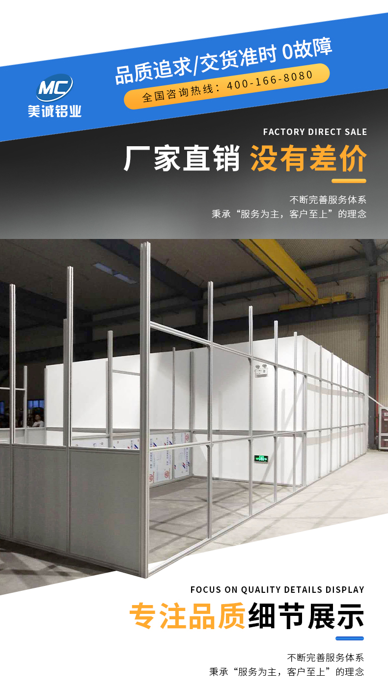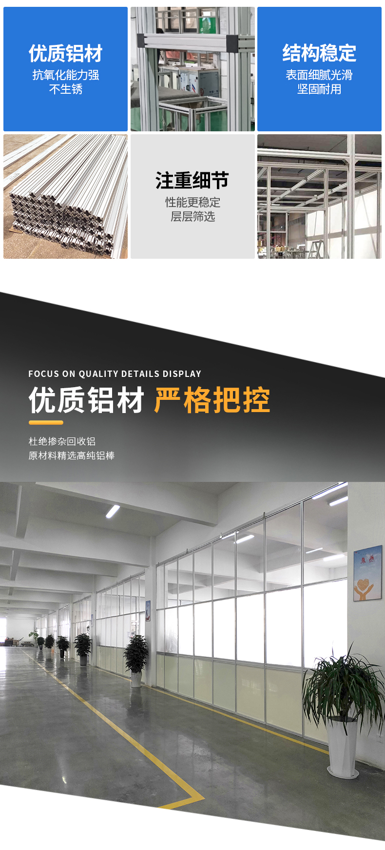工業(yè)鋁型材材質(zhì)100不含廢鋁,擠壓設(shè)備先進,技術(shù)精良。沒有擠壓痕,表面陽極氧化膜厚度》12um,外觀漂亮、耐臟耐磨、易清洗。