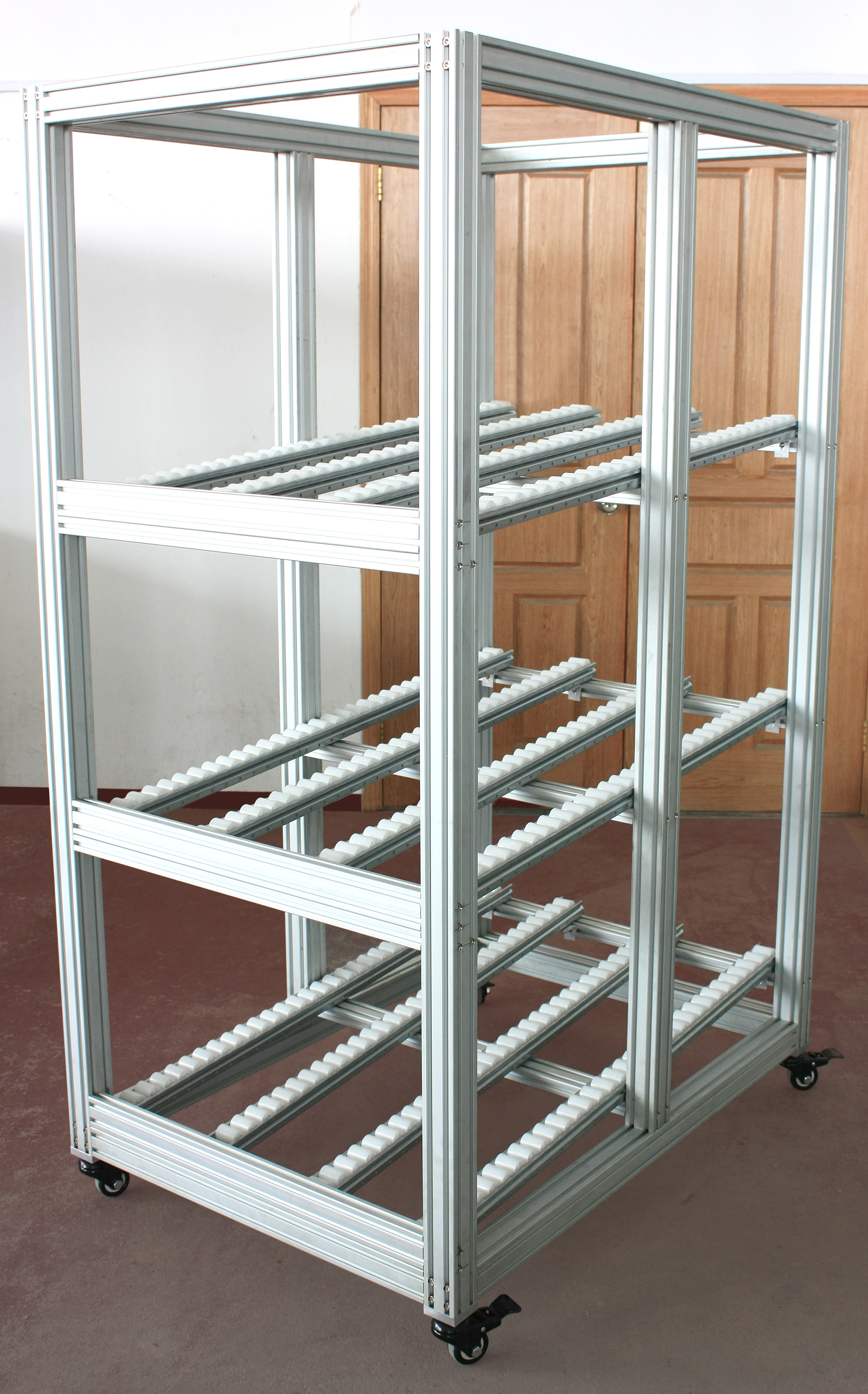 鋁型材展示架類似于物流倉儲(chǔ)貨架中的中A和中B貨架。區(qū)別就是中A和中B貨架是Q235鋼質(zhì)的,而鋁型材展示架除了連接件和板材可能不是鋁合金其他材料都是鋁合金的。鋁型材展示架主要是用來展示和存儲(chǔ)物料和產(chǎn)品的或者其他你想展示的。主要特點(diǎn)就是輕便,安裝拆卸簡單。而且清潔非常方便,外形也很美觀,色彩可以定制選擇。