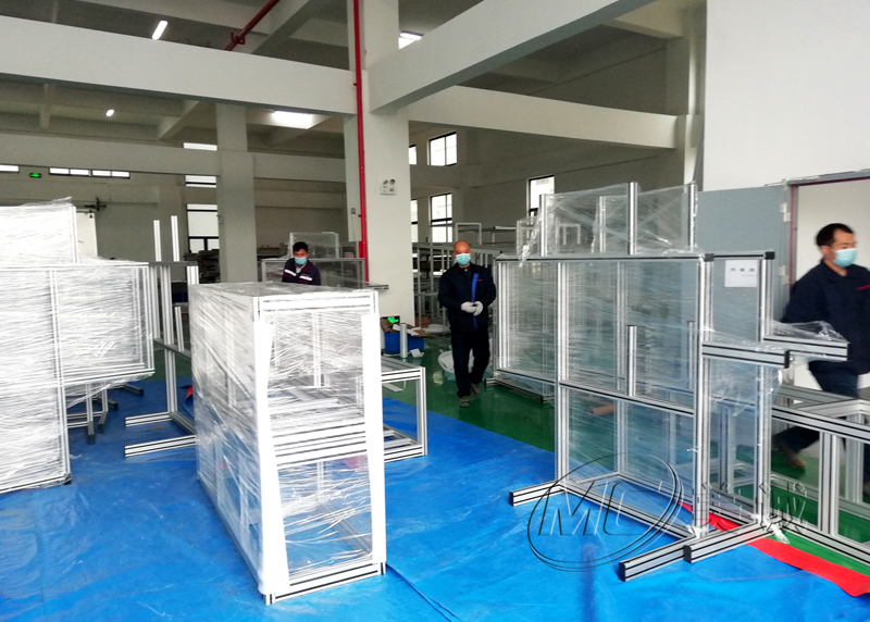 口罩機配套的流水線工作臺要求比較簡單,南京美誠鋁業(yè)還可以生產(chǎn)各種款式的流水線工作臺、工業(yè)圍欄、設(shè)備機罩等等。