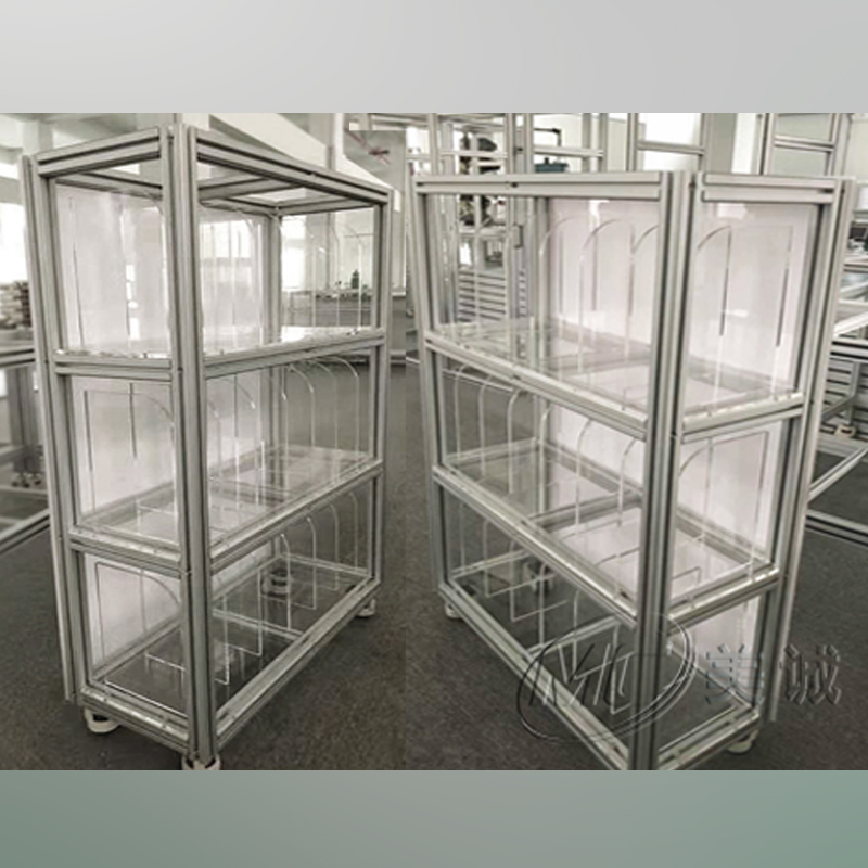 產(chǎn)品展示架是展示產(chǎn)品用的,所以它必須要有層板,一層層的方便擺放物品。層板的材料可以是木頭的也可以是鋼層板和鋁制層板或者網(wǎng)片層板。而展示架的主體框架則是選擇工業(yè)鋁型材組裝,工業(yè)鋁型材經(jīng)過加工后用螺栓螺母角件等鋁型材專用連接件連接即可。