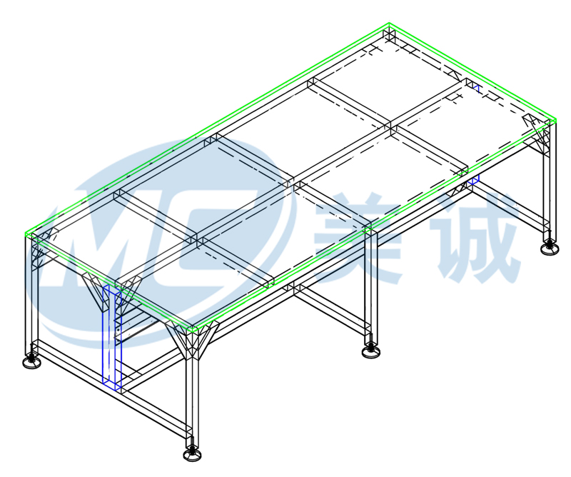 上圖就是美城鋁業(yè)出品的單面防靜電工作臺(tái),看起來(lái)有點(diǎn)像乒乓球桌子,非常簡(jiǎn)單。實(shí)際上設(shè)計(jì)起來(lái)也是非常簡(jiǎn)單的。單面防靜電工作臺(tái)圖紙如下: