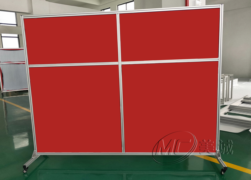 為什么叫移動鋁型材隔斷,因為在隔斷的底部安裝上帶剎車的福馬腳輪,在車間可以移動自如、無論是劃分區(qū)域還是隔絕環(huán)境內(nèi)外等等都是非常實用。
