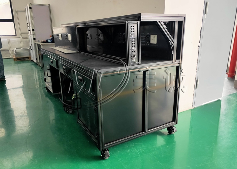 電氣操作臺(tái)是專門用來操作電氣工具或者電氣方面零部件組裝等作業(yè)的一種工作臺(tái)柜子,也屬于鋁型材框架的一種非常規(guī)制品。美誠定制的這種電氣操作臺(tái)是單工位工作臺(tái),左邊是鋁合金柜子可以存放物品,右邊可以坐單人作業(yè)。用黑色氧化表面的鋁合金型材定制電氣操作臺(tái)、防腐耐磨并且高端大氣。那么這款既有顏值又有價(jià)值的電氣操作臺(tái)是如何定制的呢?