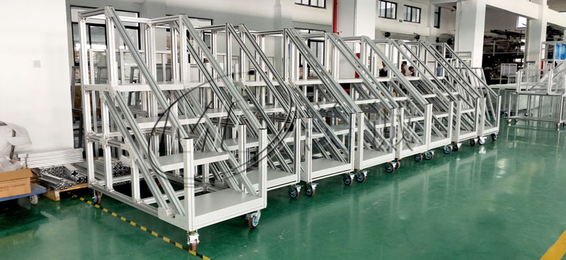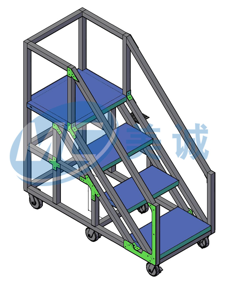 如圖,這是一個(gè)鋁合金型材定做的登高梯,有臺(tái)階有扶梯也有腳輪等等。圖上一根根縱橫交錯(cuò)的線條就是工業(yè)鋁型材,加工好的工業(yè)鋁型材經(jīng)過組裝而成。但是要組裝這個(gè)登高梯,沒有圖紙我想安裝一定是非常復(fù)雜的。圖紙上對(duì)于每一個(gè)地方的連接方式、用到的配件都做了詳細(xì)介紹,讓人一目了然。比如角件的安裝,安裝角件需要配的螺栓螺母尺寸,還有哪些地方需要內(nèi)置連接件、連接板等等。這些都是需要看圖紙的。拿到一根型材只有對(duì)照?qǐng)D紙才知道把它安裝在哪兒。